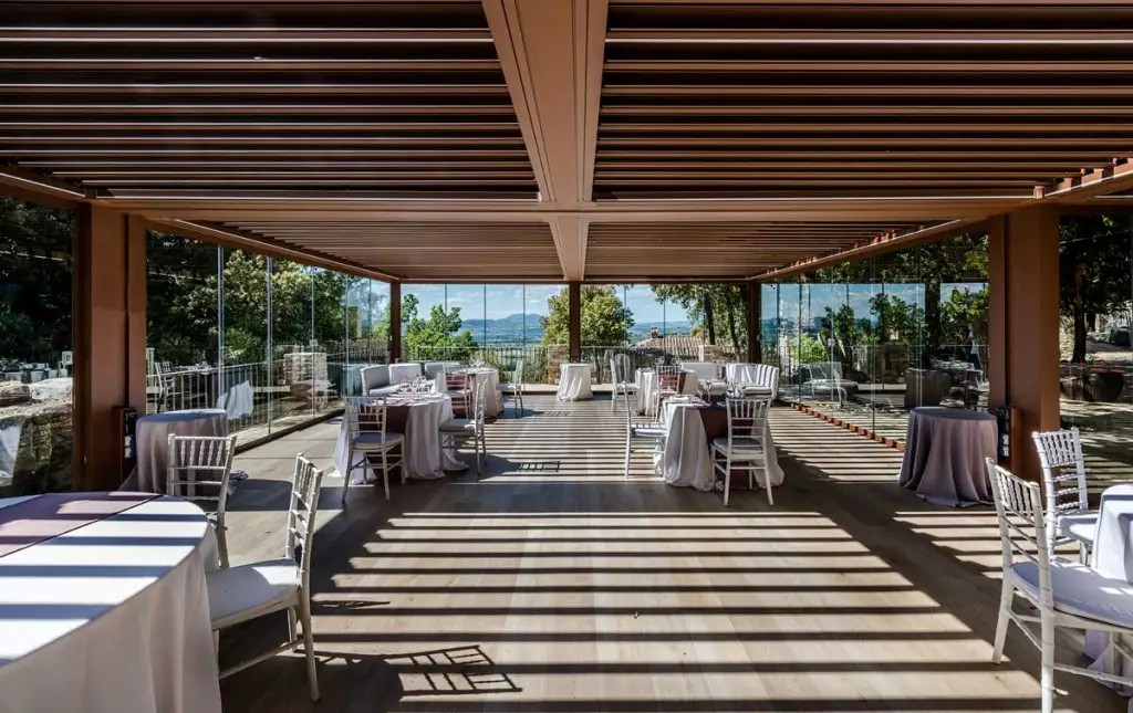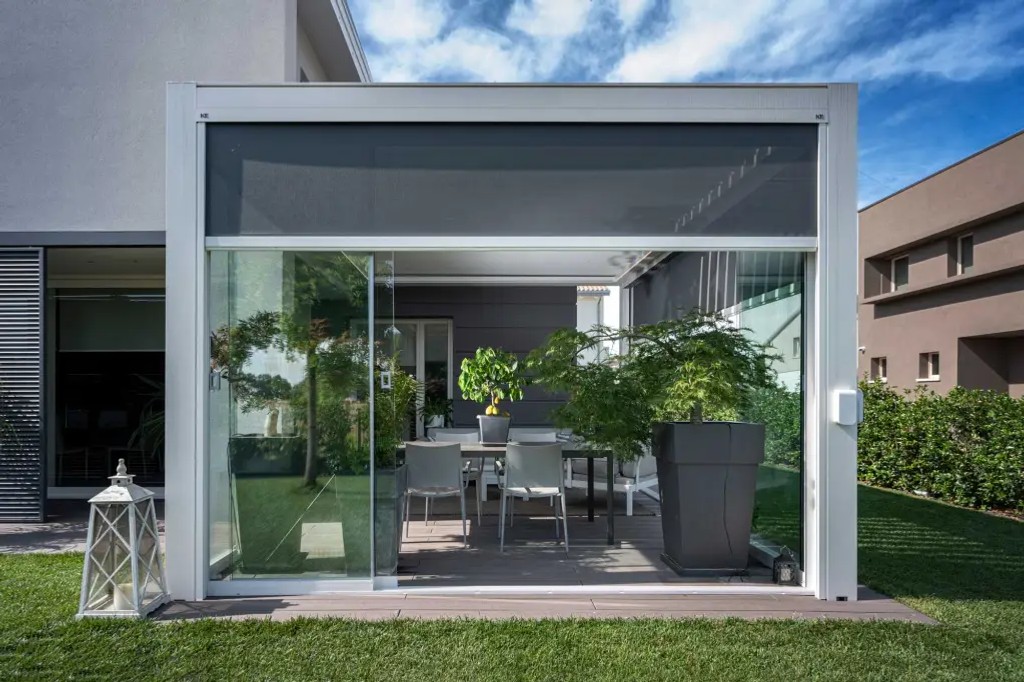 - Možnosť uzavretia vertikálnymi technickými žalúziami a posuvnými sklenenými systémami