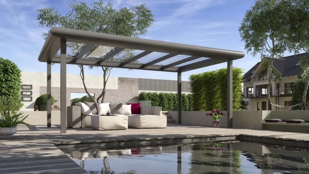 Pergola s rovnou strechou má strechu s minimálnym sklonom, nemá to takmer žiadny vplyv na hĺbku vašej verandy. Vďaka tomu je táto veranda veľmi vhodná pre domácnosti, kde je málo miesta na pripevnenie verandy, ako sú bungalovy alebo domy s nízkymi odkvapmi.