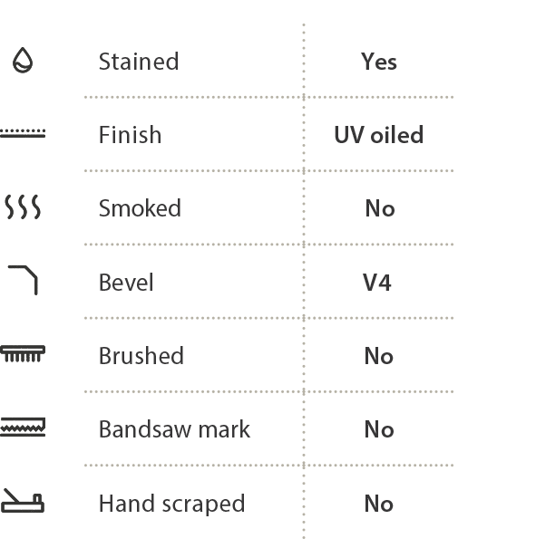 - Odolnosť: UV olejová úprava chráni povrch pred poškodením a vyblednutím spôsobeným slnečným žiarením.