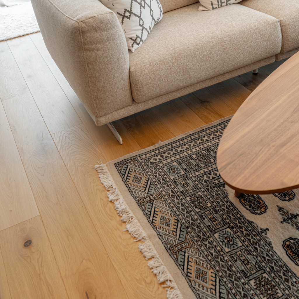 Klasický, svetlý, nadčasový, hodí sa do tradičných aj dizajnových interiérov. Táto podlaha sa vyznačuje širokou škálou farieb a rozmanitými kresbami. Odfarbenie a uzly mu dodávajú jedinečný charakter. Rôznorodosť farieb a vzorov robí túto podlahu vhodnou do moderných bytov, ale svoje uplatnenie nájde napríklad aj v detskej izbe, domácnosti či verejných priestoroch.
